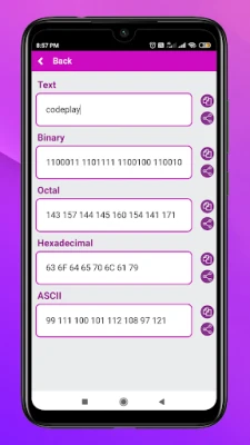 a) Text to Binary, Octal, Hexadecimal, and ASCII converter